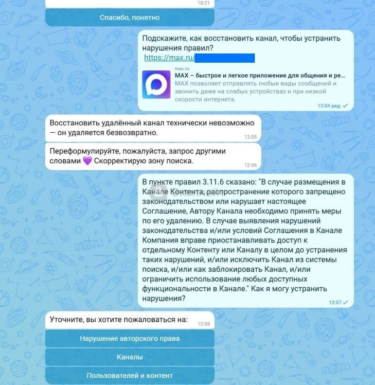 Формально правила МАХ предполагают, что при нарушении контента автора предупреждают и требуют удалить материал, но на практике блокировка прошла молча.