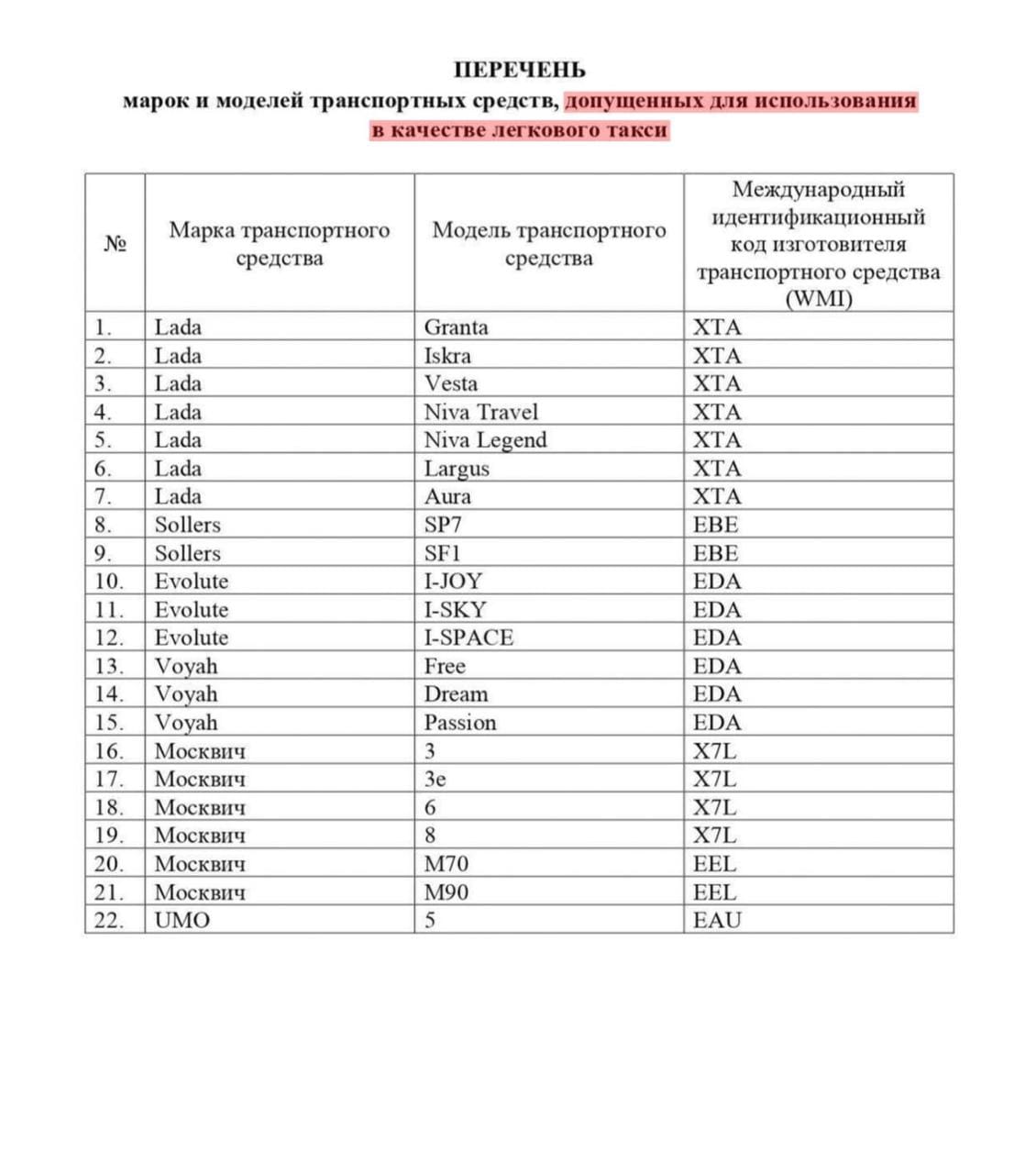 Минпромторг обновил список автомобилей, разрешённых для работы в легковом такси. 13 из 22 моделей в списке — «Москвич» и Lada. При этом из списка исключены «УАЗ Патриот» и «Хантер».